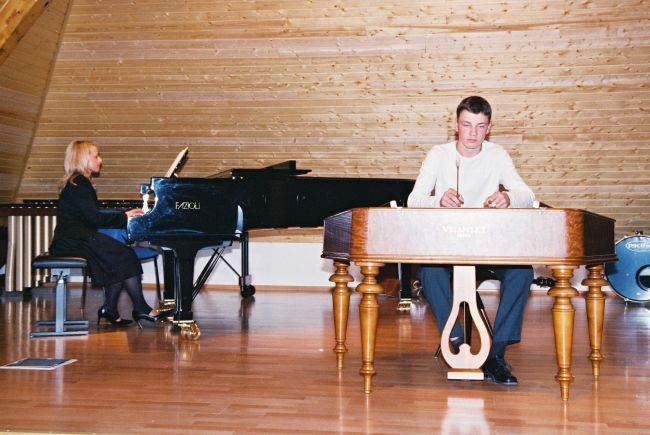 se za naši školu zúčastnili klavíristé ze třídy B.Kavanové: Václav Buchta, 1.r., Lucie Hrbková, 3.r. a duo Zuzana Buchtová - Alžběta Šmýdová. Děkujeme za úspěšnou reprezentaci v Opavě! Lucie Hrbková, 3.r., interpretovala 2 skladby Petra Hanouska, na snímku je s panem skladatelem, který byl s jejím provedením spokojen.